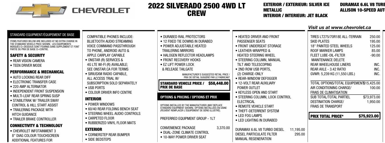 Come Check Out This Super Clean No Accident 2022 Chevrolet Silverado 2500HD Duramax Crew Cab Long Box 4WD. Set in Silver Ice or Jet Black Cloth