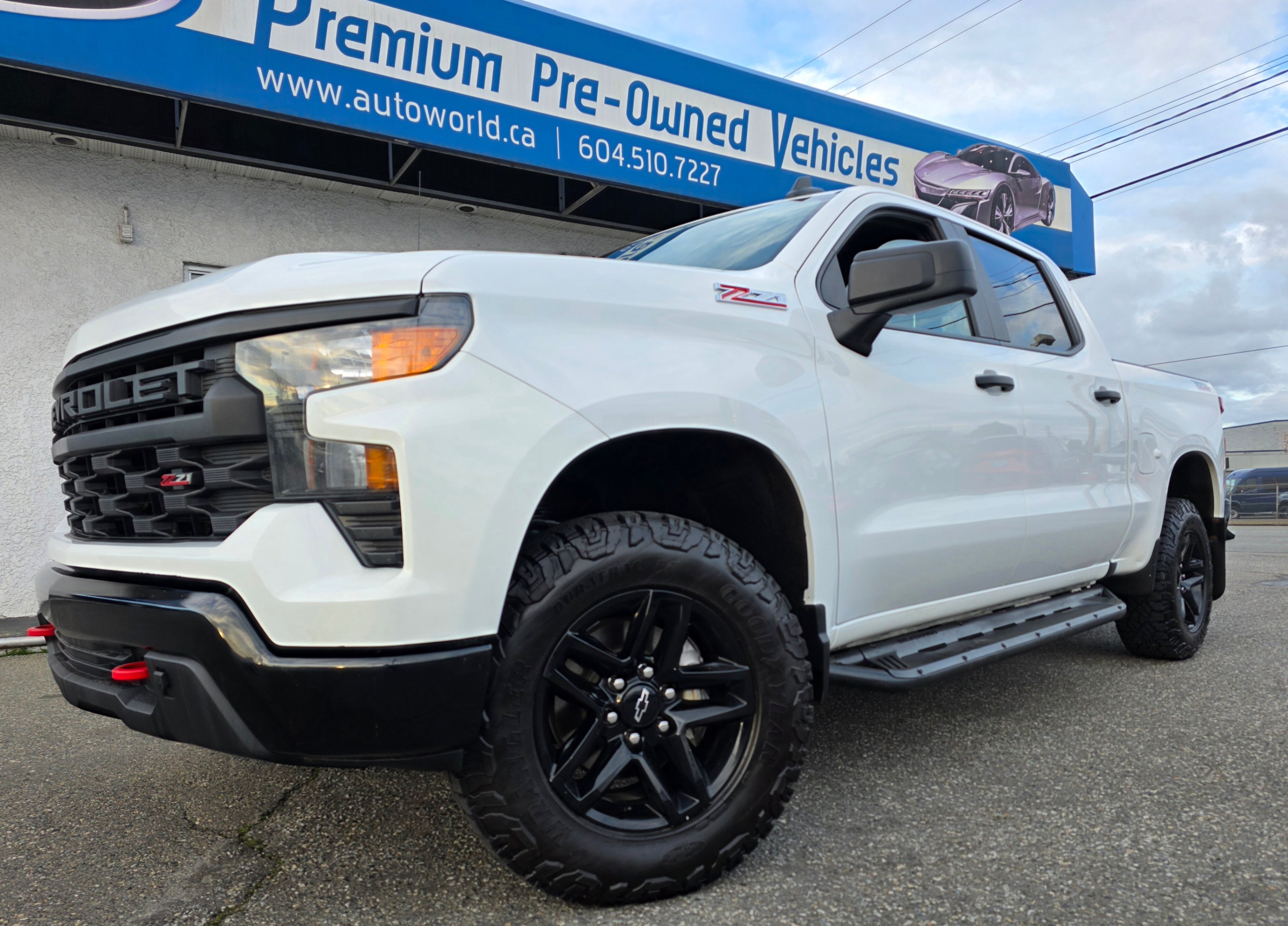 Elevate your presence on and off the road with this exceptionally clean 2024 Chevrolet Silverado Trail Boss Custom, now available at our boutique luxury showroom. Finished in a striking Summit White exterior over a bespoke Jet Black interior, this 4WD Crew Cab represents the pinnacle of utility meets sophistication.