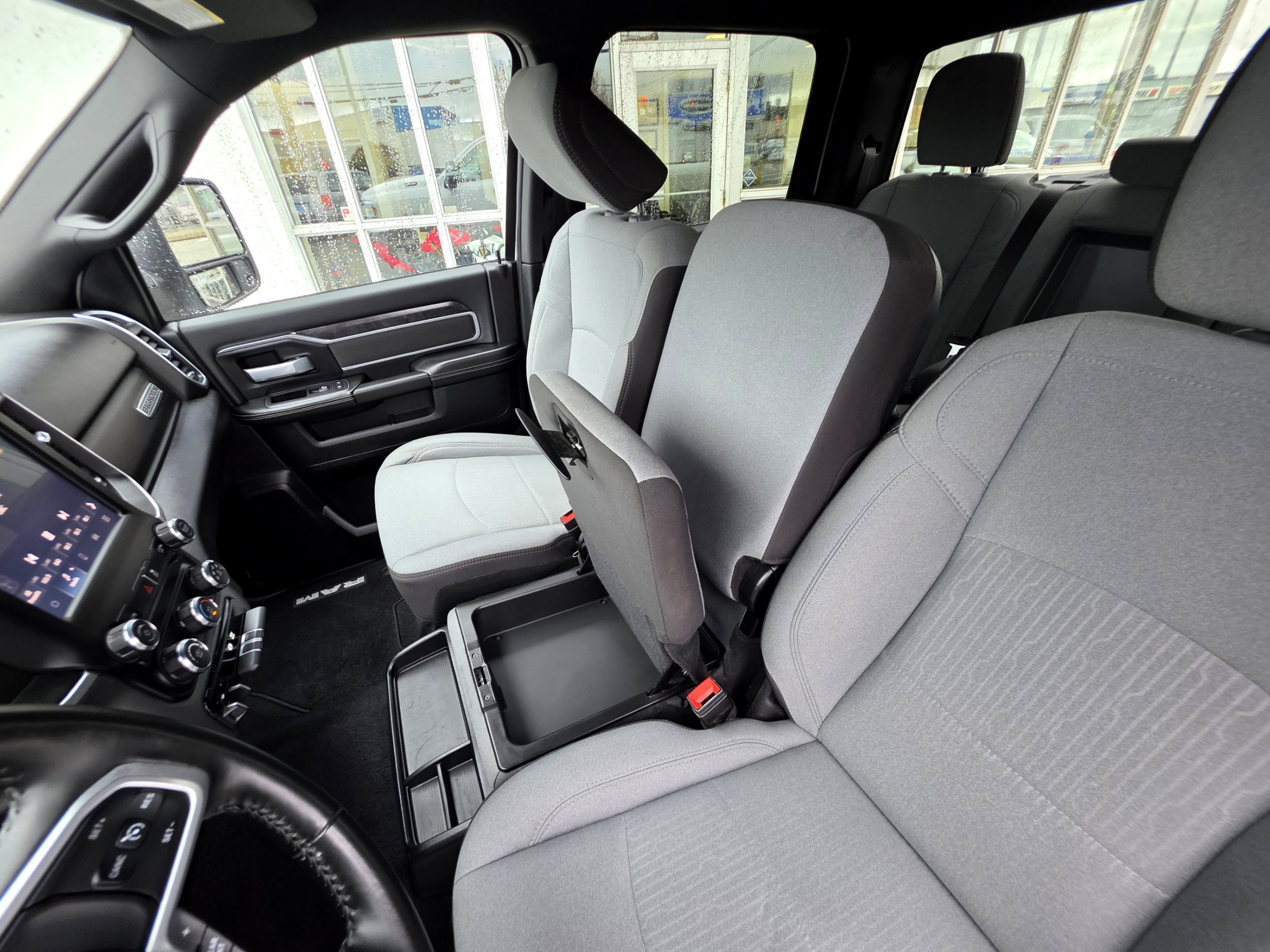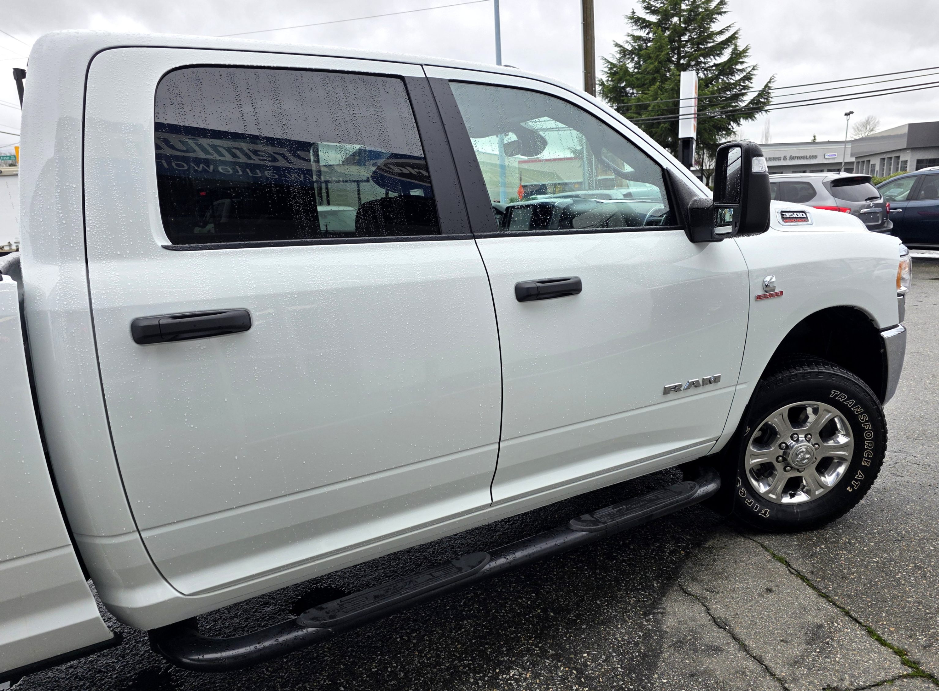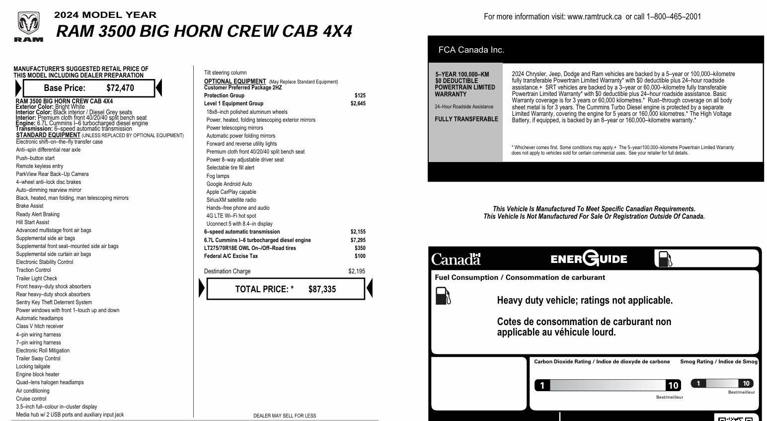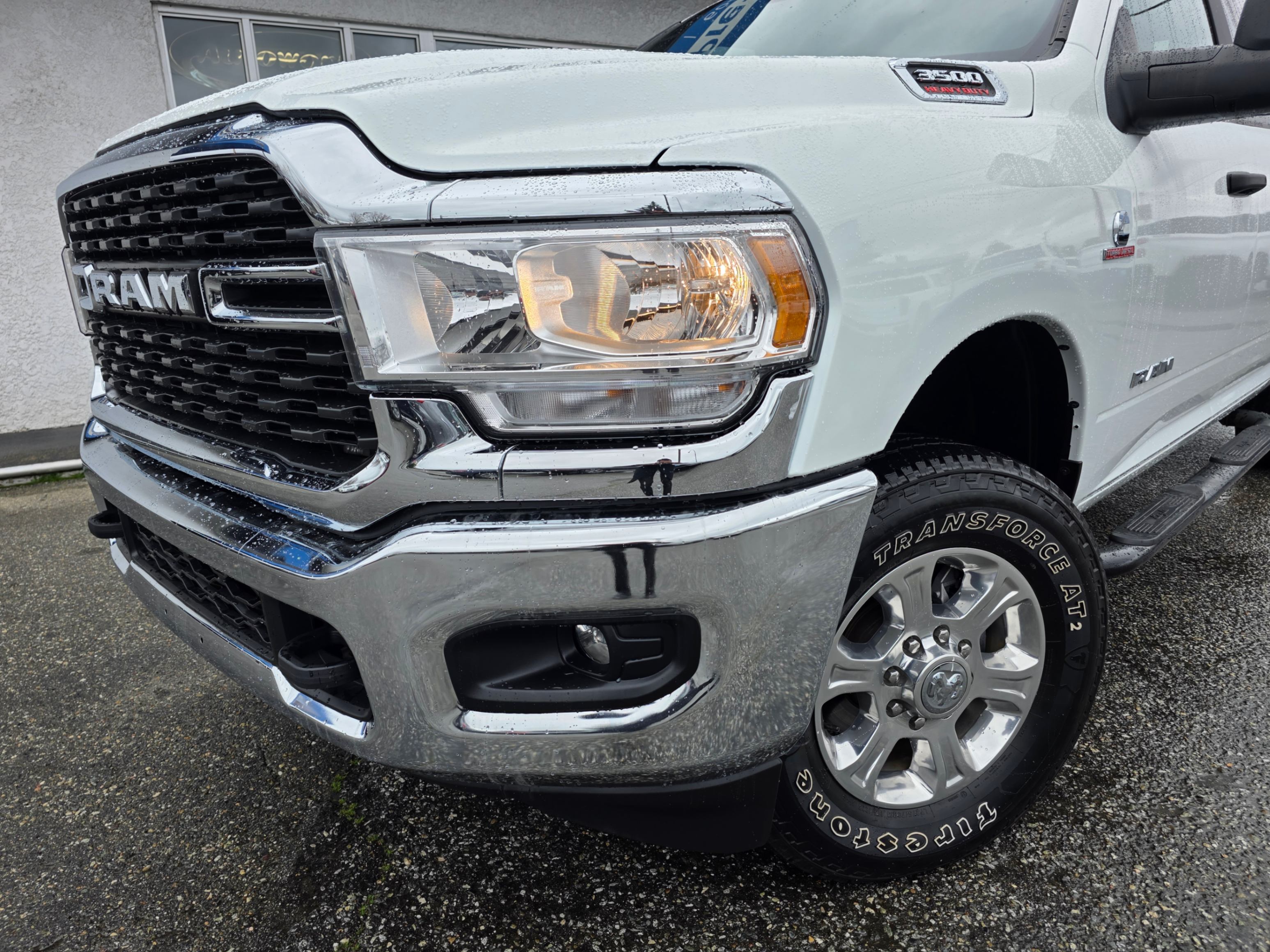 Experience the pinnacle of heavy-duty performance with this pristine 2024 RAM 3500 Big Horn Crew Cab 4x4. Finished in a striking Bright White with a sophisticated Black and Diesel Grey premium cloth interior, this truck offers a commanding presence on any road.
